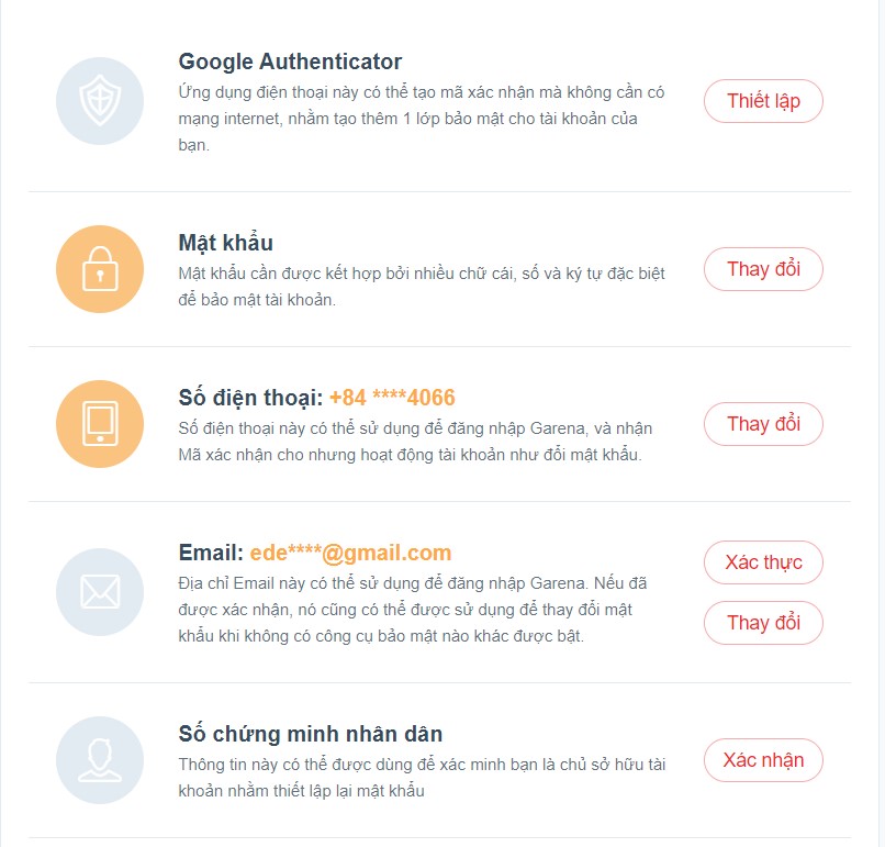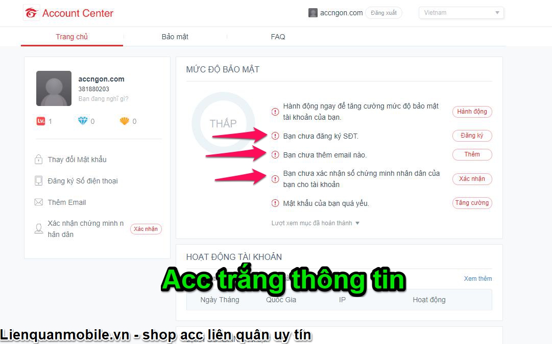 Tài khoản Garena trắng thông tin cá nhân an toàn