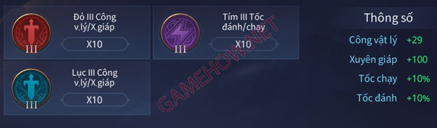 Điều đặc biệt là chiêu 1 cho phép Lữ Bố thực hiện 3 lần lướt, và hất tung kẻ địch trong lần lướt cuối. Điều này không chỉ tạo ra lượng sát thương lớn mà còn mang lại độ cơ động cao trong giao tranh. Để tối ưu hóa sức mạnh của Lữ Bố, bạn có thể tham khảo bảng ngọc 10 viên đỏ 3 tốc đánh/tỷ lệ chí mạng, 10 viên tím 3 tốc đánh/chạy, và 10 viên lục 3 công vật lý/xuyên giáp.