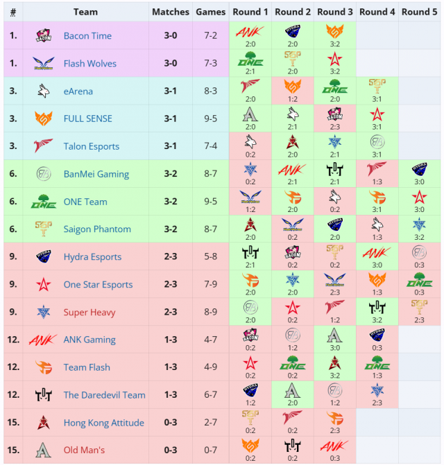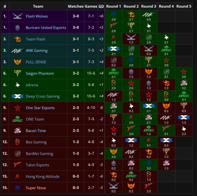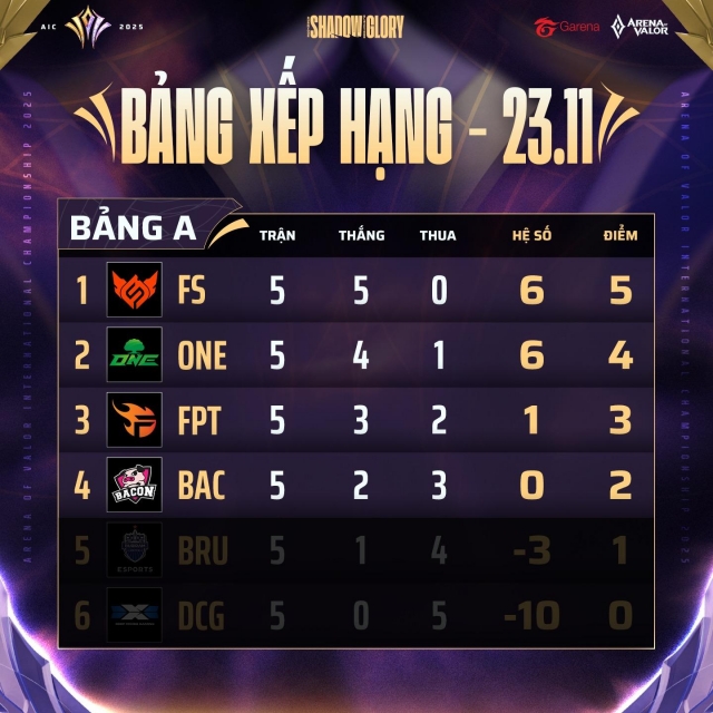 Saigon Phantom vẫn giữ vững phong độ với thành tích 100% thắng trong 15 trận đấu, giành được 67 điểm với hệ số thắng 50. The Daredevil Team và One Star cũng không kém cạnh khi lần lượt kết thúc mùa giải với 55 và 50 điểm. Việc cập nhật bảng xếp hạng hàng ngày giúp người hâm mộ có cái nhìn rõ hơn về sự chuyển mình của các đội.