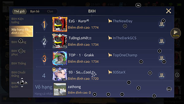 Trong bối cảnh trò chơi Liên Quân ngày càng phát triển, bảng xếp hạng không chỉ là nơi thể hiện sự cạnh tranh giữa các game thủ mà còn là thước đo cho sự nỗ lực và lao động của từng người chơi. Những vị trí cao trong bảng xếp hạng không chỉ mang lại vinh quang cá nhân mà còn góp phần làm nổi bật tinh thần đồng đội và sự cống hiến cho cộng đồng. Việc theo dõi bảng xếp hạng giúp người chơi có cái nhìn tổng quát về xu hướng chiến thuật cũng như kỹ năng cần thiết để phát triển bản thân. Hãy cùng nhau phấn đấu và chạm tới đỉnh cao trong thế giới Liên Quân!