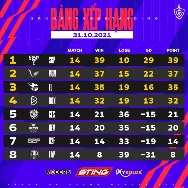 BXH sau ngày 26/08 không có nhiều thay đổi nhưng vẫn thể hiện tính cạnh tranh khốc liệt giữa các đội. Hy vọng trong các trận đấu tiếp theo, những diễn biến bất ngờ và hấp dẫn sẽ tiếp tục diễn ra, khiến cho các fan không thể rời mắt khỏi màn hình. Hãy cùng chờ đón những bất ngờ từ ĐTDV Mùa Đông 2022!
