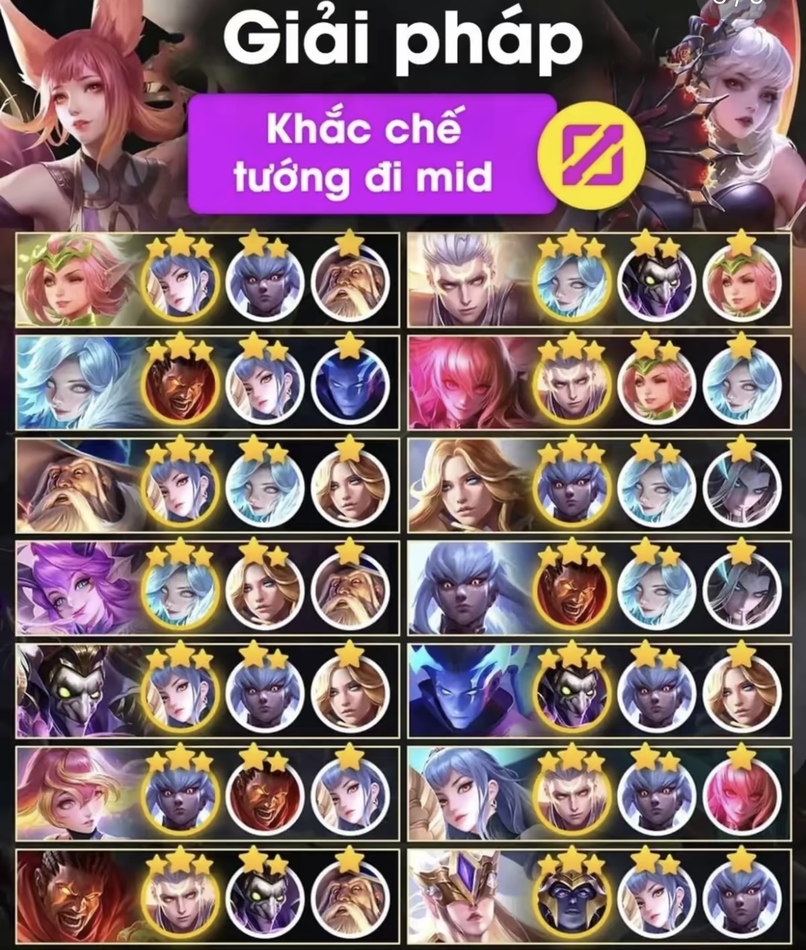 Trong Liên Quân, cách chọn tướng khắc chế là rất quan trọng, đặc biệt khi bạn đảm nhận vị trí đi giữa. Vì ngoài việc gây sát thương, tướng đi mid còn giúp hỗ trợ rừng với các pha gank sau khi dọn lính. Do đó, việc chọn tướng phù hợp không chỉ dựa vào khả năng khắc chế mà còn phải cân nhắc đến yếu tố “thuận tay” của bản thân.