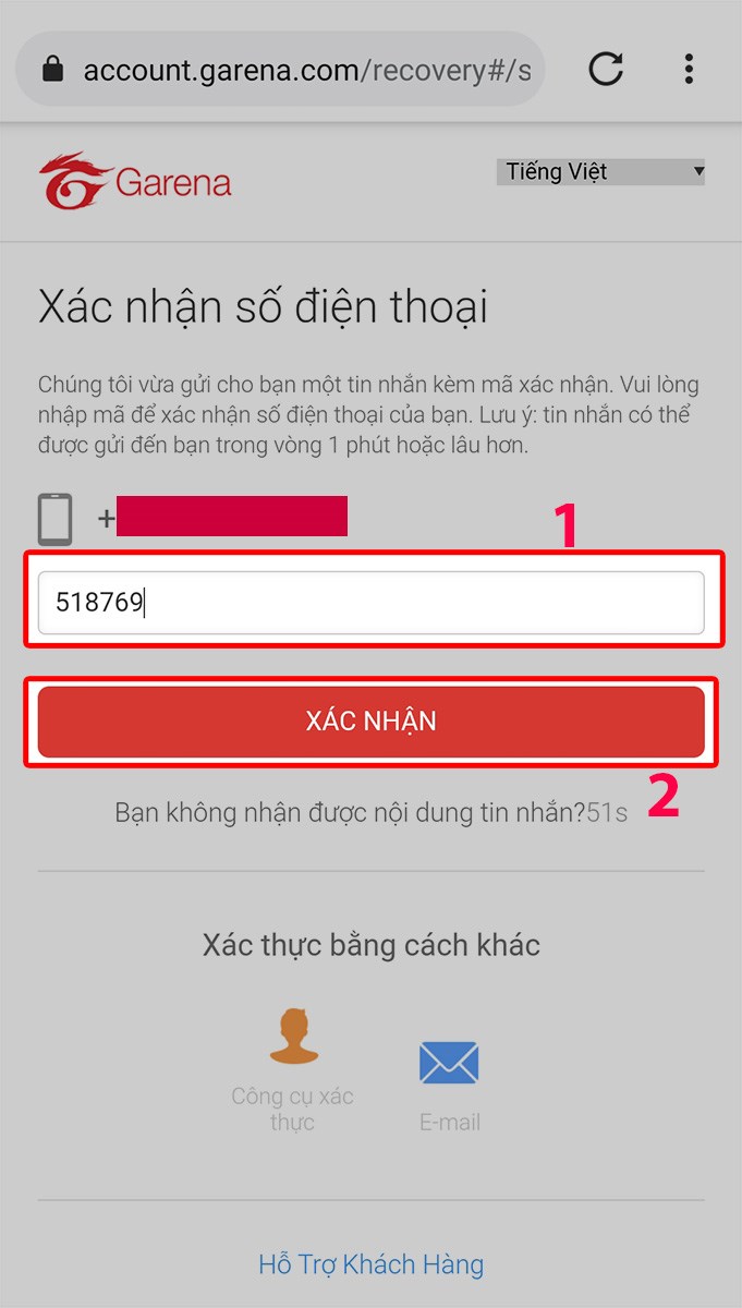 Khi nhận được mã, chỉ cần nhập mã vào ô yêu cầu và lựa chọn xác nhận. Nếu tài khoản của bạn đã được xác thực bằng email và số điện thoại, bạn cũng có thể sử dụng CMND hoặc CCCD để chứng minh quyền sở hữu tài khoản. Điều này rất hữu ích khi bạn không còn nhớ thông tin đăng nhập khác.