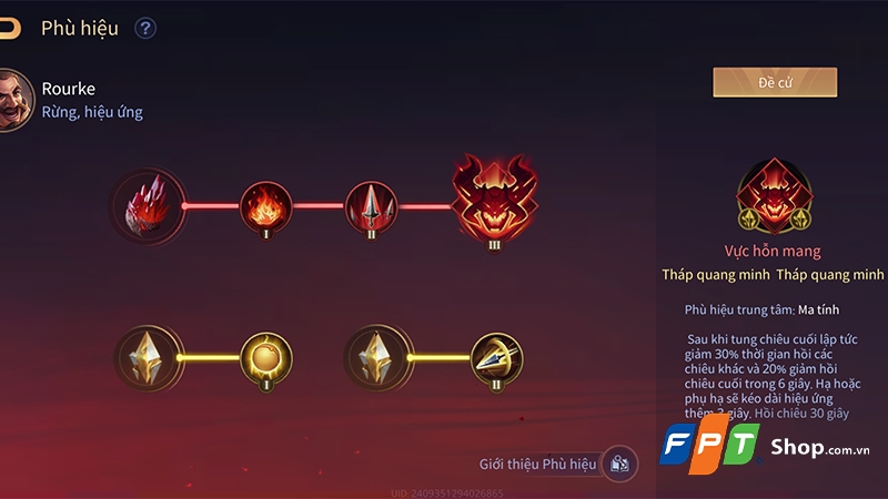 Khi chơi Rourke đi rừng, một trong những điều quan trọng nhất là chọn phù hiệu Ma tính. Phù hiệu này giúp Rourke hồi chiêu nhanh hơn, tối ưu hóa sát thương của hắn trong các cuộc giao tranh. Bên cạnh đó, việc chọn phép bổ trợ trừng phạt cũng rất cần thiết để dọn rừng hiệu quả.