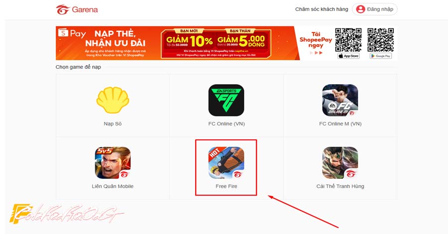 Nếu bạn muốn mua thẻ tháng Free Fire bằng thẻ cào, hãy làm theo hướng dẫn đơn giản sau đây. Đầu tiên, bạn cần truy cập vào website nạp thẻ của Garena. Tại đây, chọn tựa game Free Fire để bắt đầu quá trình nạp thẻ.