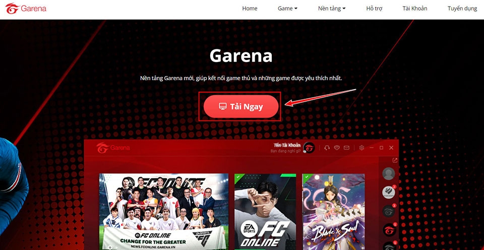 Nếu bạn đang tìm cách tải Garena PC để thỏa sức chơi những tựa game yêu thích như FIFA Online 4 hay Liên Minh Huyền Thoại, thì hãy làm theo hướng dẫn này nhé! Đầu tiên, mở trình duyệt web và truy cập vào trang chính thức của Garena tại địa chỉ https://www.garena.vn/gpc. Tại đây, bạn sẽ thấy mục “Tải ngay” dành cho nền tảng PC. Nhấn vào đó để bắt đầu tải file cài đặt.
