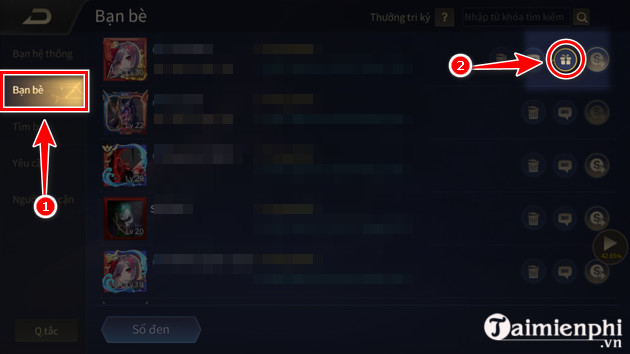 Khi tặng Quân Huy trong Liên Quân Mobile, bạn không chỉ đang trao một món quà ảo mà còn gửi gắm nhiều ý nghĩa. Để quá trình tặng quà diễn ra suôn sẻ, trước tiên, hãy vào danh sách bạn bè, chọn người bạn muốn tặng và bấm vào biểu tượng hộp quà để lựa chọn phần quà phù hợp.