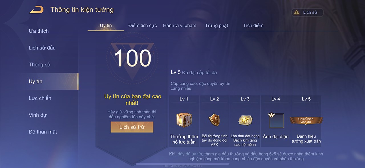 Hệ thống điểm uy tín của Liên Quân rất quan trọng, nó không chỉ đánh giá hành vi của bạn mà còn ảnh hưởng đến quyền lợi trong các chế độ chơi khác nhau. Vì vậy, hãy luôn nỗ lực giữ vững điểm uy tín cao, để trải nghiệm game được trọn vẹn và thú vị hơn nhé!