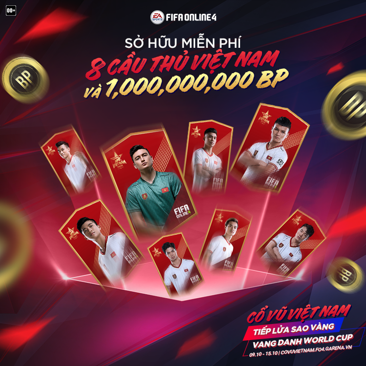 Đội trưởng Quế Ngọc Hải, Đặng Văn Lâm, Nguyễn Văn Toàn, Phan Văn Đức và Vũ Văn Thanh đã chính thức xuất hiện trong FIFA Online 4 Việt Nam, mang đến niềm vui cho người hâm mộ bóng đá nước nhà. Đặc biệt, sự kiện “CỔ VŨ VIỆT NAM” không chỉ cho phép người chơi tích lũy điểm cổ vũ mà còn mang lại cơ hội rinh cầu thủ Việt Nam hoàn toàn miễn phí.