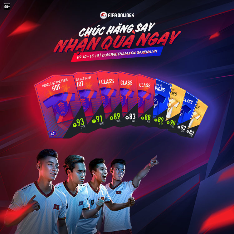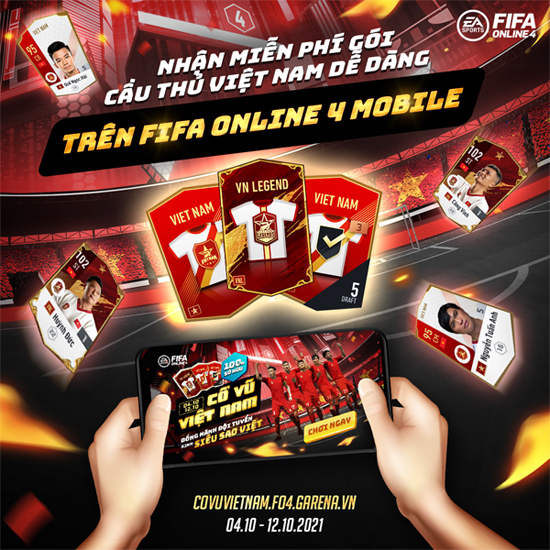 Câu Cổ Vũ Việt Nam trong FIFA Online 4 đang tạo nên một cơn sốt cho các HLV yêu bóng đá. Từ nay đến ngày 12.10.2021, mọi người có thể tham gia săn cầu thủ Việt miễn phí tại https://covuvietnam.fo4.garena.vn/. Đặc biệt, khi đạt đến mốc thứ 9, 100% HLV sẽ nhận được thẻ cầu thủ Việt Nam, thật là một phần quà tuyệt vời dành cho những ai đam mê thể thao điện tử.