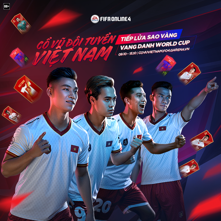 Từ ngày 04.10 đến 12.10.2021, sự kiện “Cổ vũ Việt Nam” tại FIFA Online 4 (FO4) nhằm hỗ trợ đội tuyển bóng đá nam Olympic Việt Nam đang chuẩn bị cho những trận đấu căng thẳng. Đây là cơ hội để người hâm mộ thể hiện tình yêu và sự ủng hộ dành cho đội tuyển bằng cách tham gia cổ vũ ngay tại trang web covuvietnam.fo4.garena.vn.