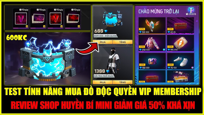 Bạn có thể chọn một cái bất kỳ mà mình thích, từ vũ khí đến trang phục, và bắt đầu khám phá các tính năng hấp dẫn khác. Cửa hàng này không chỉ đa dạng về mặt sản phẩm mà còn có tính năng mua đồ độc quyền thông qua VIP MEMBERSHIP, giúp bạn trải nghiệm những điều tuyệt vời nhất của Free Fire. Đừng quên theo dõi các chương trình giảm giá, vì có rất nhiều ưu đãi lên đến 50%!