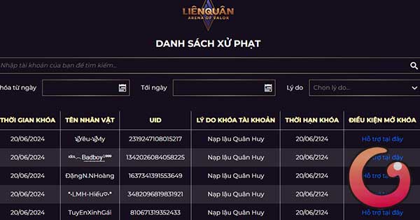 Danh Sách Các Thành Viên Bị Xử Phạt Liên Quân