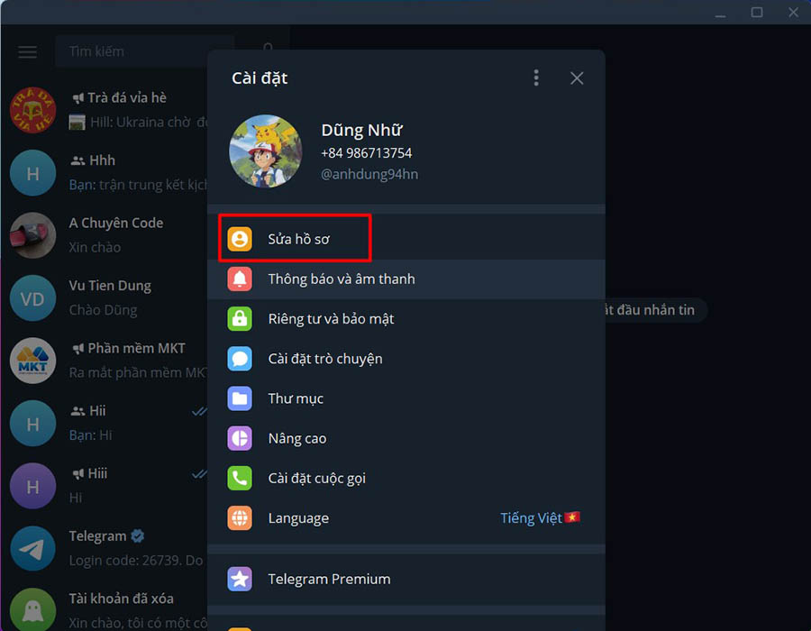 Cách Đổi Số Điện Thoại Trên Telegram Trên Máy Tính