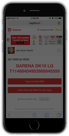Trang nạp thẻ chính thức của Garena mang đến cho bạn trải nghiệm nạp thẻ dễ dàng và an toàn cho các game nổi tiếng như Free Fire, Liên Quân Mobile, FIFA Online 4 và nhiều tựa game khác. Để nạp Sò, Quân Huy hay RP, bạn chỉ cần đăng nhập vào trang web napthe.vn, chọn phương thức thanh toán qua Viettel SMS, và chọn mệnh giá bạn mong muốn.