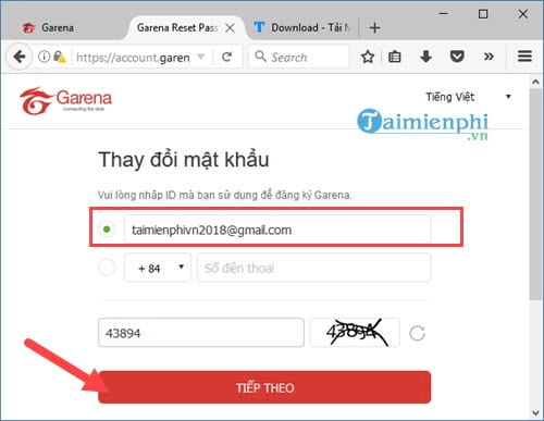 Sau khi vào trang khôi phục, bạn hãy nhập tên tài khoản Garena và mã Captcha theo yêu cầu. Điều này giúp bảo đảm rằng bạn là người đăng nhập thực sự. Tiếp theo, hãy nhập địa chỉ email mà bạn đã dùng để đăng ký tài khoản Garena. Đừng quên kiểm tra kỹ thông tin bạn đã nhập! Sau đó, chọn “Tiếp theo” để nhận mã xác thực qua email.