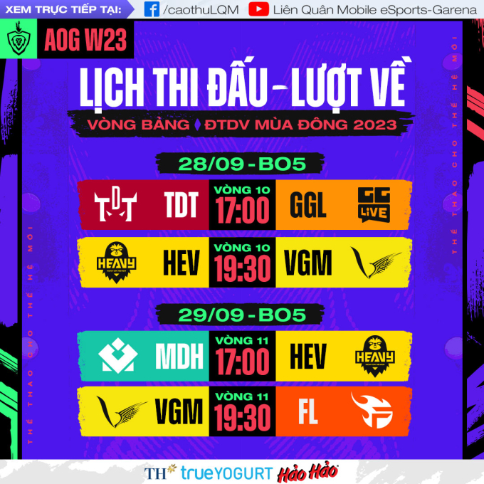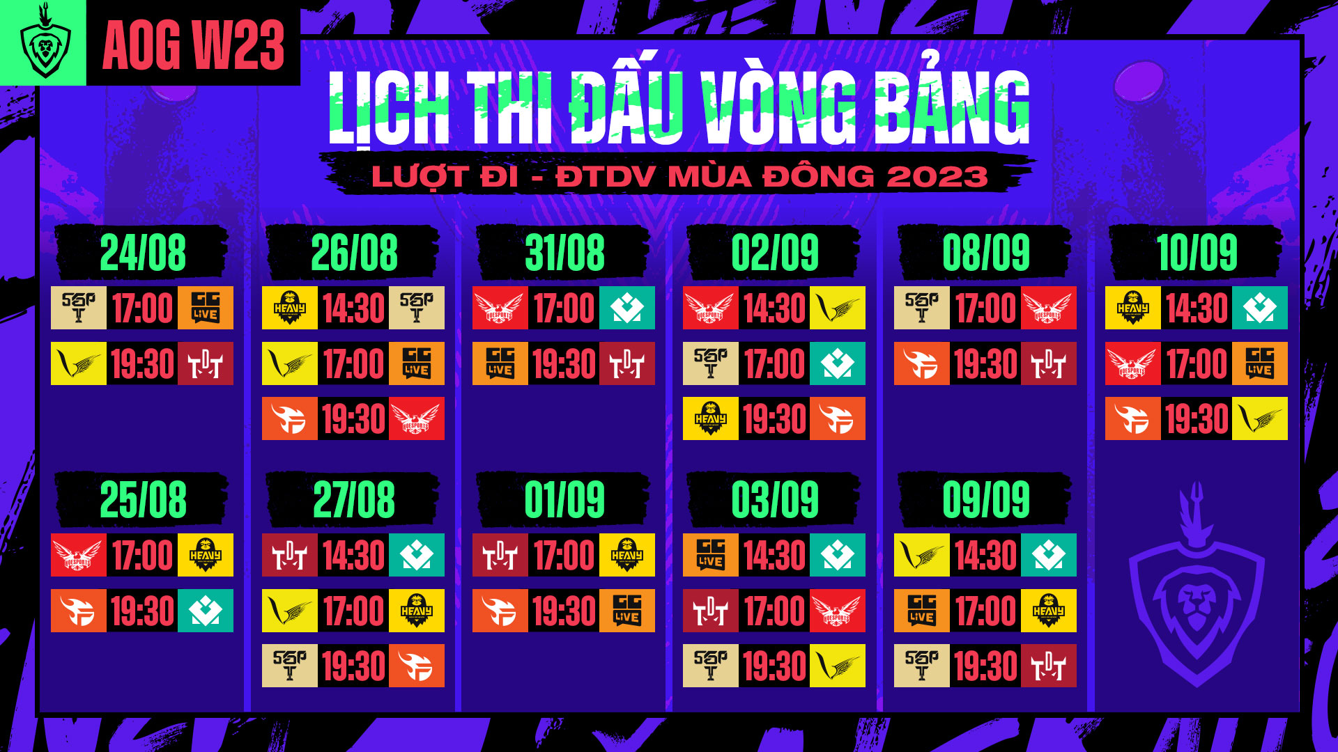 Các trận đấu sẽ diễn ra vào nhiều khung giờ khác nhau, tạo điều kiện cho fan hâm mộ dễ dàng theo dõi. Một số trận đấu đáng chú ý như SGP gặp FL vào ngày 08/09 và VGM đối đầu với GG Live vào ngày 09/09. Không khí của mùa giải hứa hẹn sẽ rất sôi động và kịch tính.