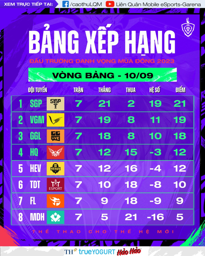 Không chỉ dừng lại ở đó, GG Live cũng đang phấn đấu hết mình để giữ vững vị trí thứ ba với 31 điểm. Trong khi đó, Team Flash và HQ Esports đang đua tranh gay gắt với cùng 23 điểm, tạo nên một cuộc chiến hấp dẫn ở khu vực giữa bảng. Các fan hâm mộ không khỏi hồi hộp theo dõi từng diễn biến của giải đấu, hy vọng vào những bất ngờ trong các vòng đấu tiếp theo.