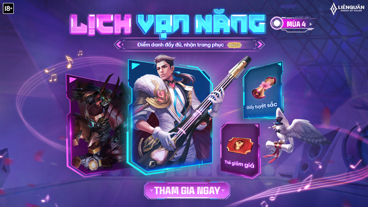 Đặc biệt, sự kiện này là cơ hội tuyệt vời cho những ai yêu thích cày chay, giúp bạn sở hữu những skin đẹp và phần thưởng giá trị mà không cần đầu tư quá nhiều. Hãy chuẩn bị tinh thần để đón chào những bất ngờ từ Lịch Vạn Năng 2025 nhé!