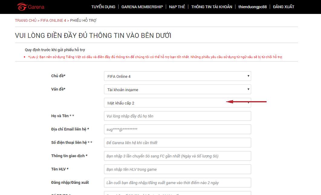 Khi bạn quên mật khẩu cấp 2 trong FIFA Online 4 và nhập sai tới 5 lần, tài khoản sẽ tự động bị khóa. Tuy nhiên, đừng lo lắng! Bạn hoàn toàn có thể khôi phục ngay lập tức thông qua trang web khôi phục mật khẩu. Chỉ cần đăng nhập bằng tài khoản Garena của mình để thực hiện việc này.