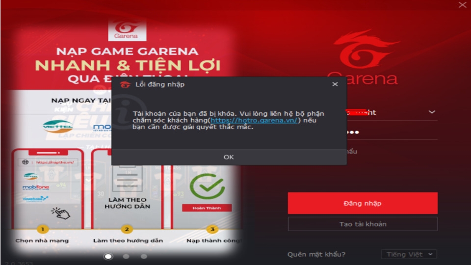 Nếu bạn quên mật khẩu Garena, hãy thực hiện các bước khôi phục mật khẩu ngay tại trang https://resetpass.fconline.garena.vn/. Nếu không đủ thông tin xác thực sau khi thử, bạn cũng có thể gửi phiếu yêu cầu để được hỗ trợ. Các trường hợp tài khoản bị khóa thường do vi phạm quy định, nhập sai mật khẩu quá nhiều lần, hoặc cáo buộc hành vi tiêu cực trong game.