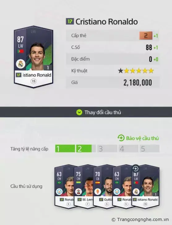 Tiếp theo, hãy chú ý đến thanh tỷ lệ màu xanh đậm, nó sẽ giúp bạn có cái nhìn rõ ràng về khả năng thành công của quá trình nâng cấp. Chắc chắn rằng bạn chọn đúng cầu thủ nguyên liệu, vì điều này sẽ tác động trực tiếp đến kết quả cuối cùng. Những bí quyết này sẽ giúp bạn nâng cấp cầu thủ hiệu quả và tối ưu hóa đội hình trong FO4. Chúc bạn chơi game vui vẻ!