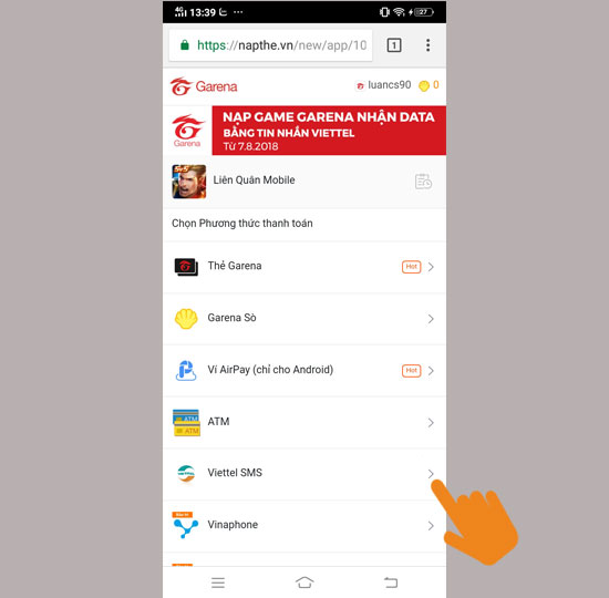 Khi đã vào trang nạp, lần đầu tiên bạn cần đăng nhập vào tài khoản game của mình. Sau đó, hãy chọn mục VNPay và lựa chọn gói quân huy hoặc các hình thức nạp khác. Đối với việc thanh toán qua SMS, bạn chỉ cần chọn nhà mạng mà mình đang sử dụng, thường là Viettel cho các thuê bao trả trước.