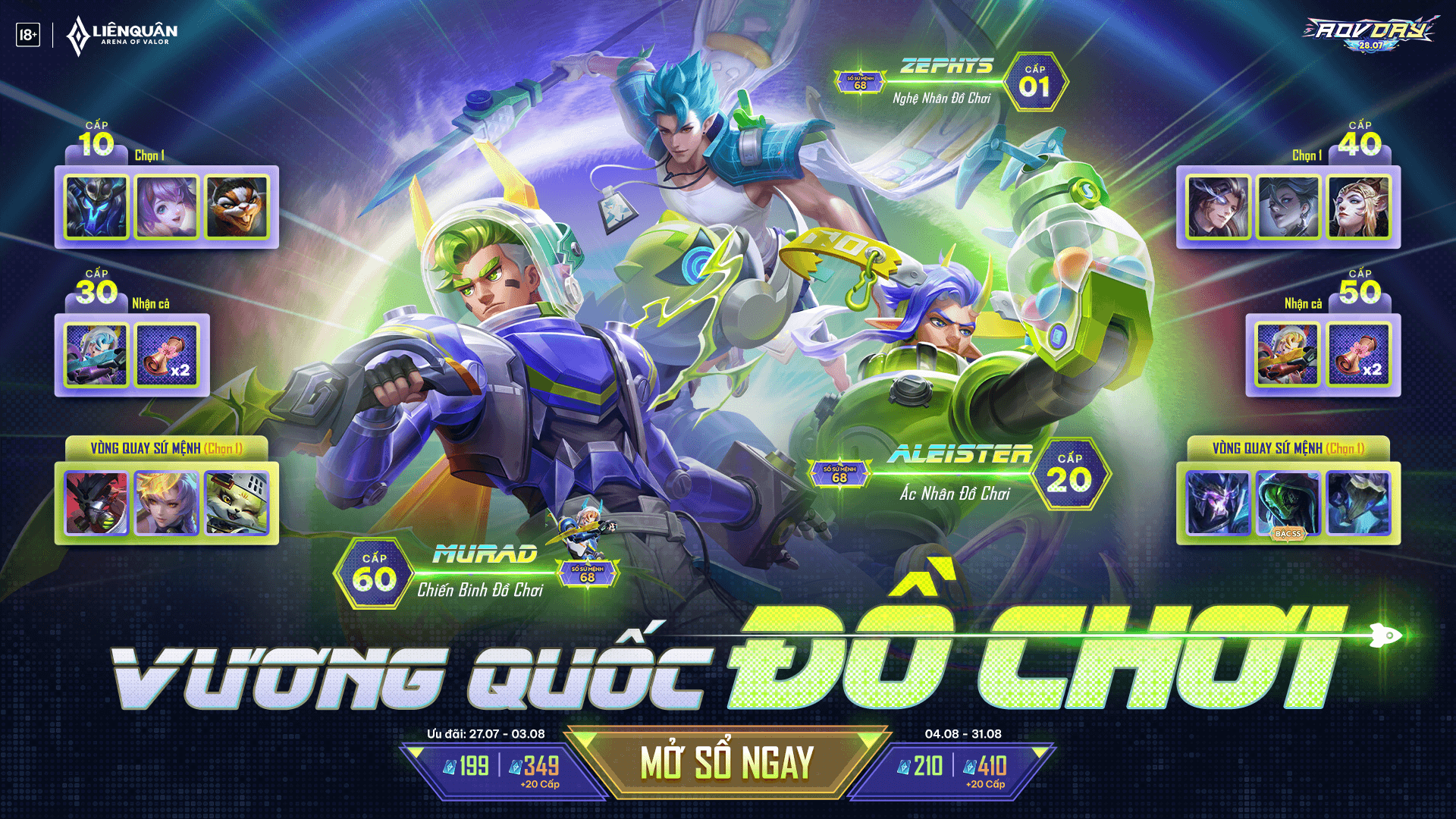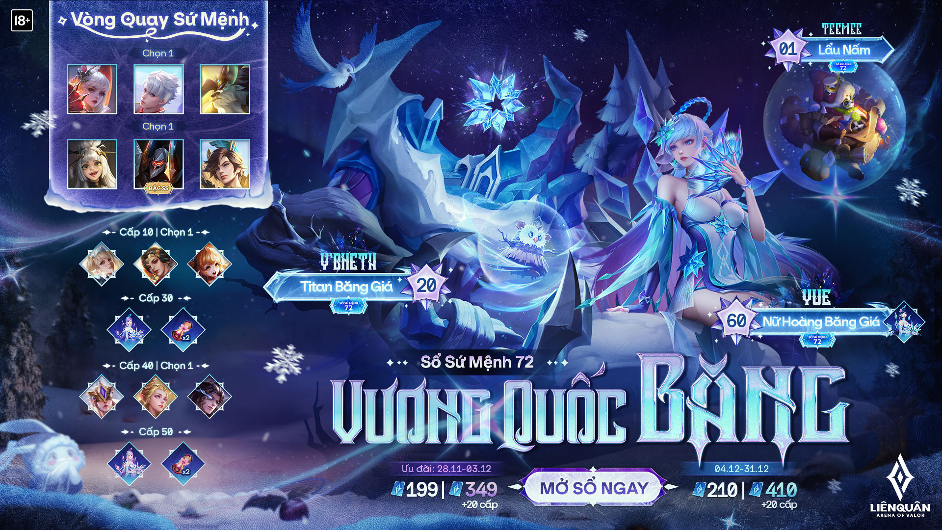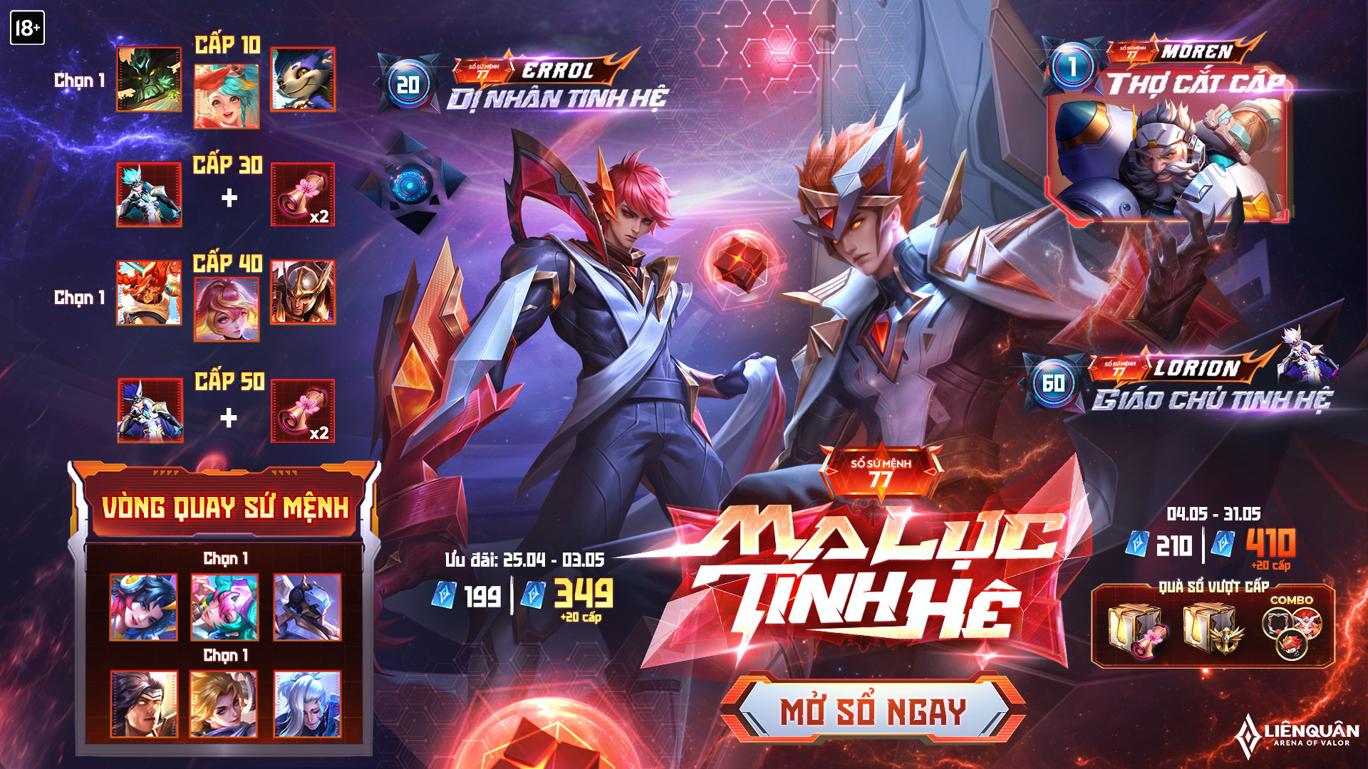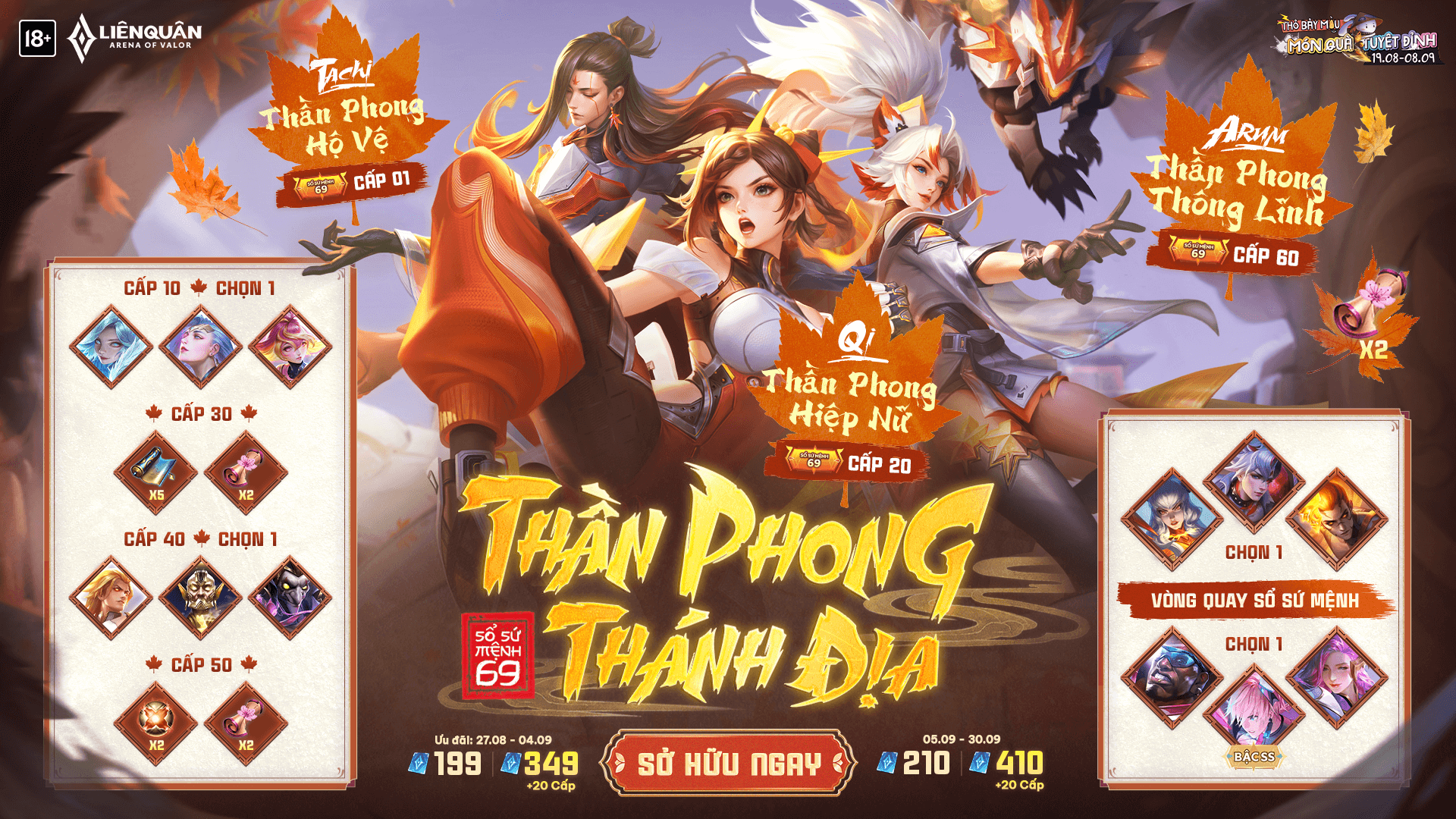 Nếu bạn muốn tăng tốc nhanh hơn, mở Sổ Sứ Mệnh vượt cấp là lựa chọn hoàn hảo. Với mức giá 410 quân huy, bạn không chỉ nhận ngay 20 cấp, mà còn mở ra cơ hội sở hữu những nhân vật cực chất như Ryoma Thống Lãnh Quỷ Binh hay Ormarr Quỷ Vệ. Điều này thật sự là một lợi thế lớn cho những ai yêu thích game.