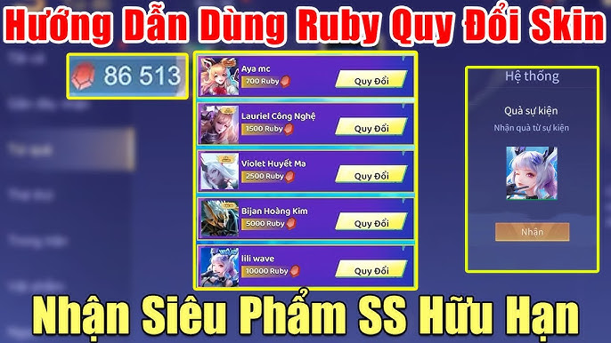 Hãy tận dụng thời gian này để tối ưu hóa việc sử dụng Ruby và nhận những phần thưởng giá trị nhất. Đừng chần chừ, bước ngay vào việc đổi Ruby để trở thành một game thủ ưu tú trong Liên Quân Mobile nhé!