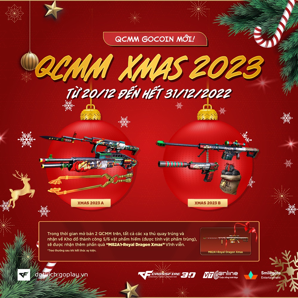 Sự kiện Giáng Sinh năm nay sẽ diễn ra vào lúc 19:00 ngày 20.12 tại 8 khu vực của BTC, nơi người chơi sẽ được nhận những vật phẩm độc quyền cực chất. Ngoài ra, chỉ với một trận đấu mỗi ngày, bạn sẽ nhận được Vé tham gia vòng quay Giáng Sinh, từ đó có khả năng kiếm được những ICONS hay trang phục mới rất đẹp.