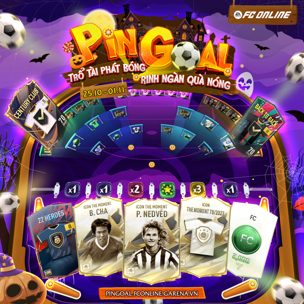 Ngoài ra, FC Online còn mang đến sự kiện HALLOWEEN GOAL: CHỌN GÓC SÚT HAY – NHẬN NGAY ICONS. Để không khí thêm phần sống động, sự kiện này sẽ giúp các HLV có cơ hội nhận những phần thưởng hấp dẫn chỉ với việc tham gia dự đoán góc sút.