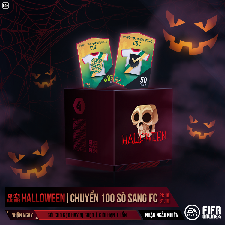 Xin chào các HLV! Mùa Halloween đang đến gần và FC Online không quên mang đến cho các bạn sự kiện đặc biệt từ ngày 30.10 đến 02.11. Đây là cơ hội tuyệt vời để bạn sở hữu những ưu đãi lên đến 200% khi chuyển sò, cùng với nhiều phần quà hấp dẫn khác.