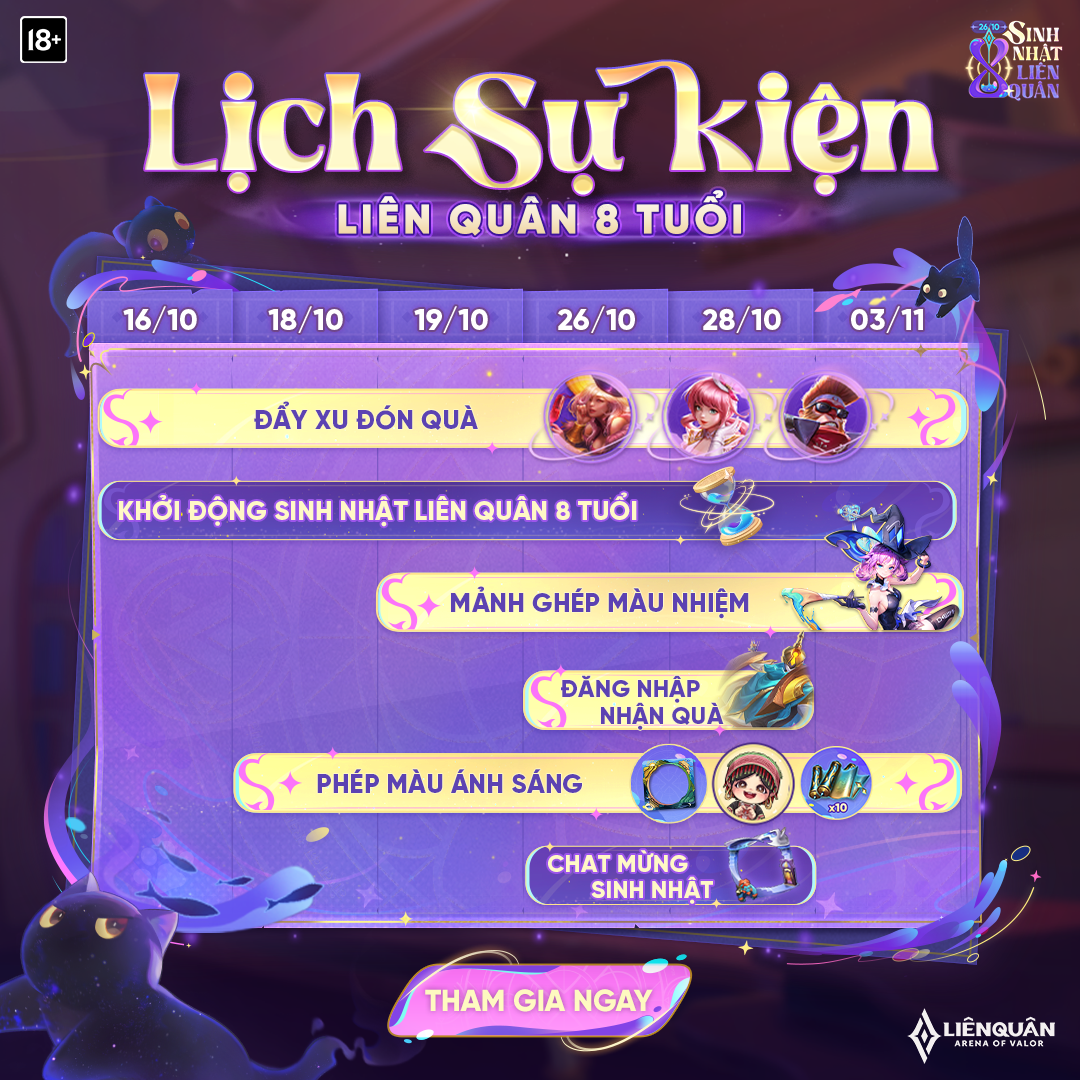 Chào mừng các Kiện Tướng đến với cuộc thi “Sáng Tạo Trang Phục Sinh Nhật Liên Quân 10 Tuổi”! Sự kiện này hứa hẹn sẽ mang đến nhiều bất ngờ và thú vị cho tất cả người chơi. Thời gian mở cổng nhận bài dự thi sẽ bắt đầu từ 12:00 ngày 12/11/2025. Đây chính là cơ hội để bạn thể hiện tài năng thiết kế và sức sáng tạo của mình, từ đó góp phần làm phong phú thêm thế giới Liên Quân.