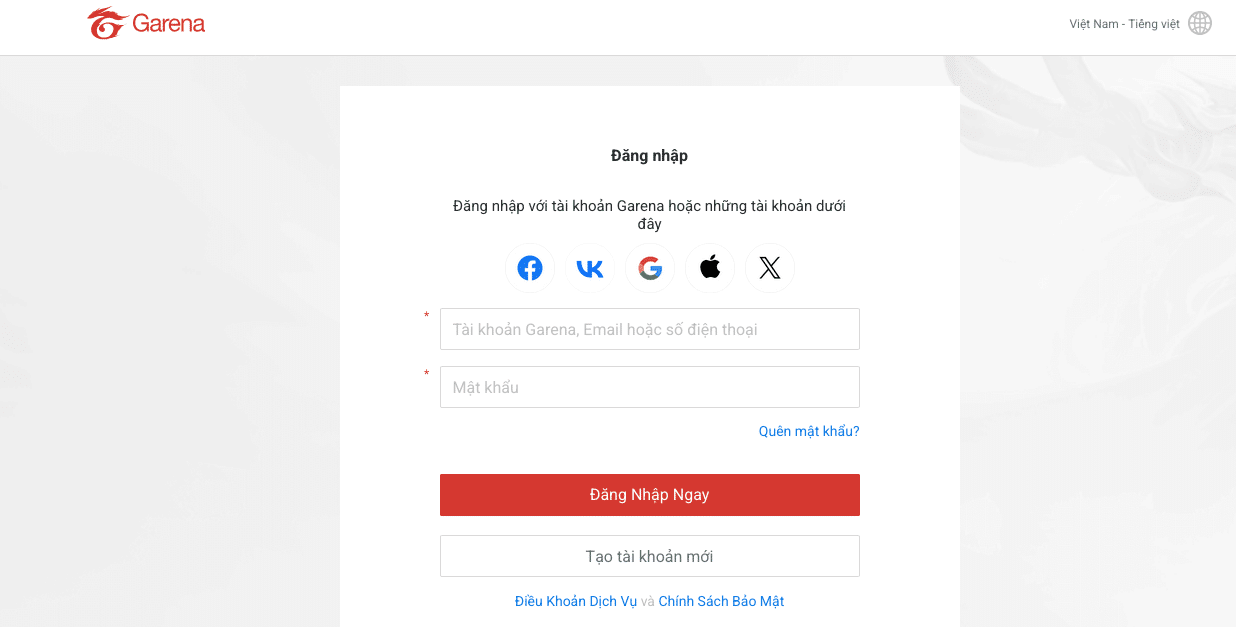 Đăng nhập vào hệ thống hỗ trợ Garena thật đơn giản và nhanh chóng. Đầu tiên, bạn chỉ cần truy cập vào địa chỉ website https://hotro.garena.vn/ và chọn phương thức đăng nhập mình mong muốn. Garena cho phép người dùng đăng nhập qua nhiều kênh như Facebook, Gmail, số điện thoại hay ID Apple, giúp bạn linh hoạt hơn trong việc sử dụng tài khoản.