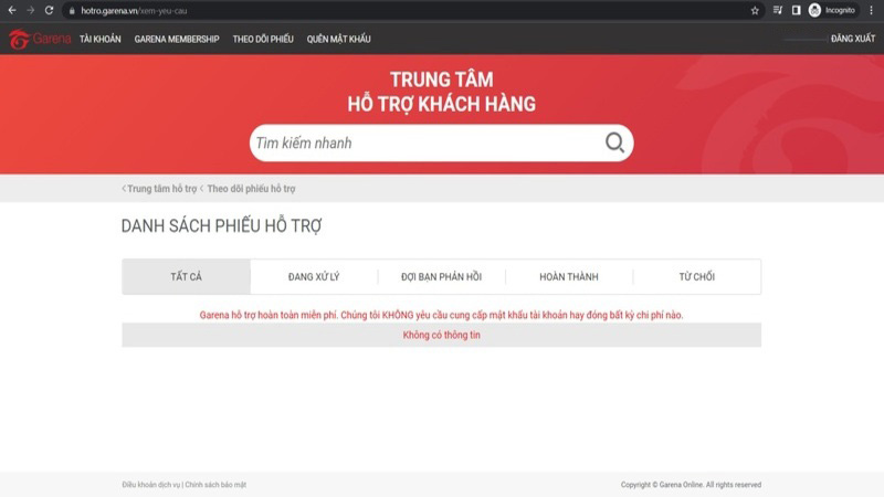 Ngoài ra, Garena còn cung cấp Trung Tâm Hỗ Trợ Khách Hàng, nơi bạn có thể theo dõi phiếu hỗ trợ và chọn game cần trợ giúp. Hãy nhớ rằng, mọi vấn đề về tài khoản hay game đều có thể được giải quyết tận tình và nhanh chóng từ đội ngũ Garena.