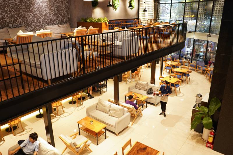 Quán gây ấn tượng với thiết kế hiện đại và sang trọng, sử dụng các chất liệu bản địa như gốm sứ và terrazzo, tạo ra không gian ấm áp và sáng tạo. Điểm đặc biệt là quán phục vụ đa dạng thức uống, từ cà phê, trà xanh đến trà sữa, với mức giá chỉ từ 29K.
