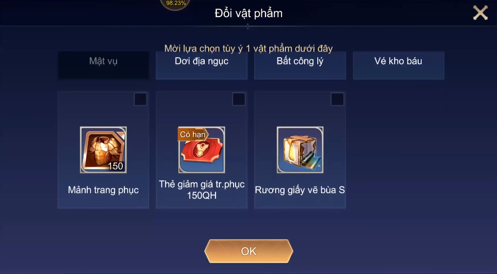 Ngoài ra, trong thời gian diễn ra sự kiện, bạn cũng có thể nhận thêm thẻ giảm giá khác, như thẻ 250 QH cho những người đạt thông thạo S. Vậy tại sao không chớp ngay cơ hội này để tăng sức hấp dẫn cho nhân vật của mình và tạo nên những trận đấu thú vị hơn?